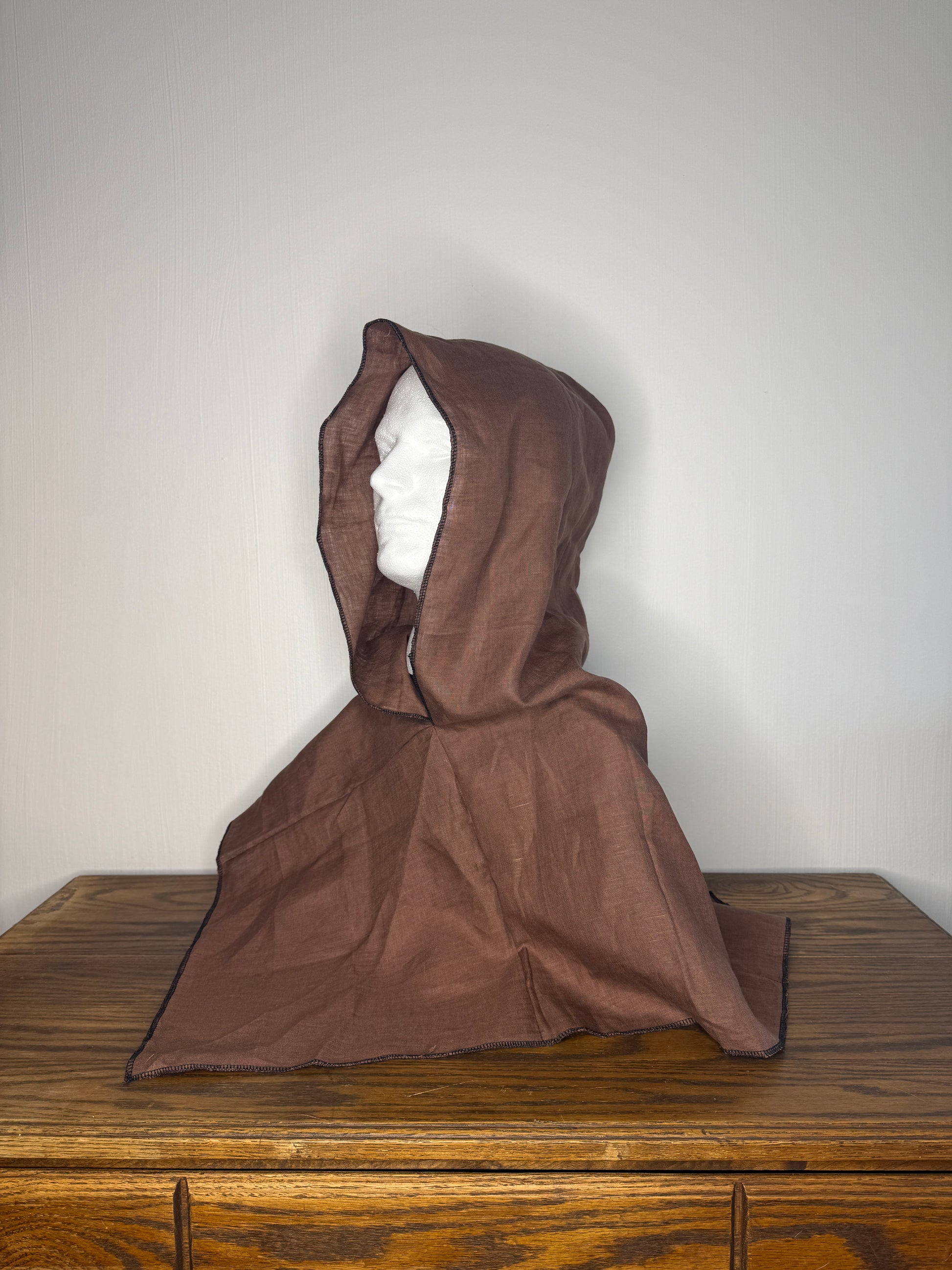 Brown Linen Hood, Black Thread