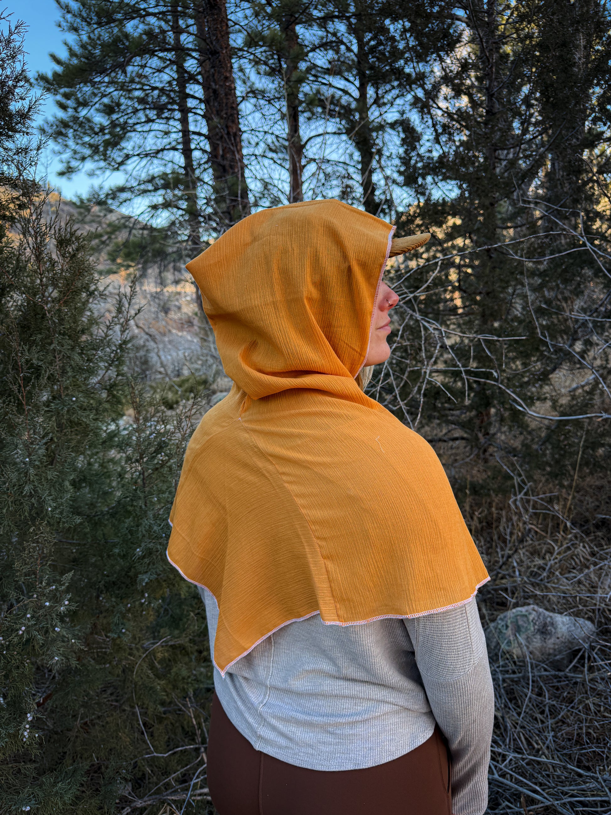 Yellow Cotton Gauze Hood, White Thread